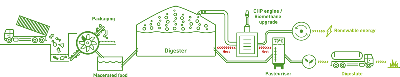 In partnership with Severn Trent Green Power all waste food collected by DM Food Recycling is disposed of at one of their Anaerobic Digestion (AD) facilities. The waste food is used to generate green power for the National Grid, allowing our customers to contribute to the reduction of CO2 and greenhouse gas emissions, and enhance their green credentials.